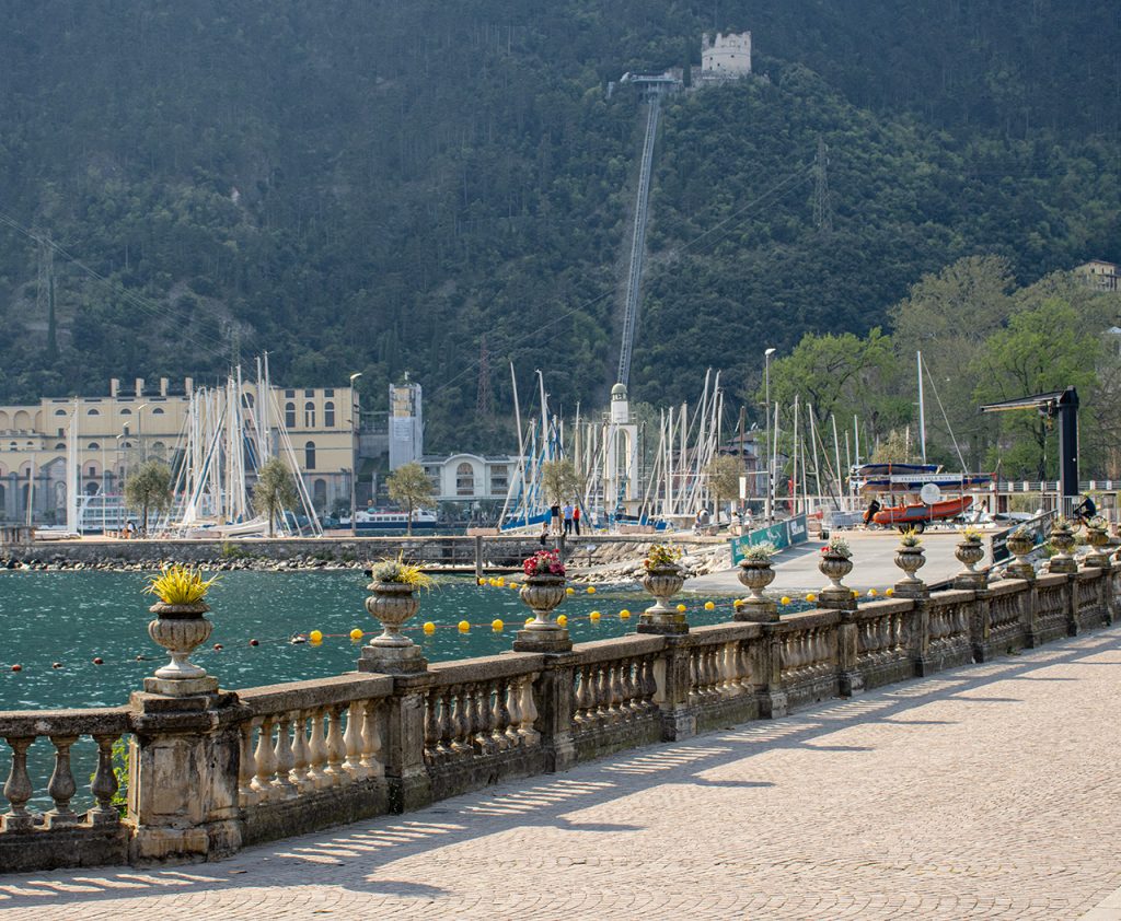 Die Via Giacomo Maroni verzaubert als eine der schönsten Promenaden Rivas. Direkt am Ufer säumen markante, mit bunter Pracht bepflanzte Stein-Blumenkübel den Weg. Sie bilden einen eleganten Rahmen für den Blick auf den glitzernden See und machen den Spaziergang zwischen mediterraner Flora und sanftem Wellenschlag zu einem unvergesslichen Erlebnis.