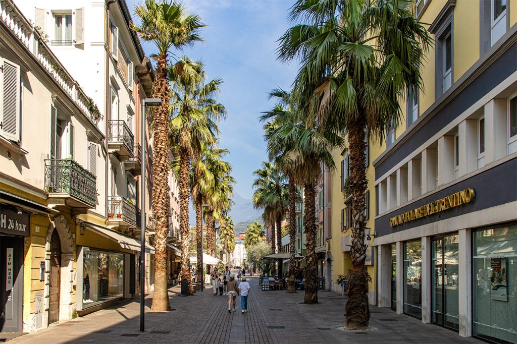 Die Viale San Francesco ist das grüne Prachtstück Rivas. Ihre majestätische Palmenallee verleiht der Stadt ein exklusives, fast subtropisches Flair. Zwischen historischen Mauern und blühenden Gärten flaniert man hier im Schatten der Wedel und spürt sofort die mediterrane Leichtigkeit, die das Nordufer des Gardasees so einzigartig und elegant macht.