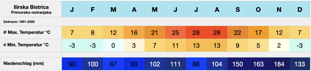 Klimatabelle von Ilirska Bistrica (1991-2020)1