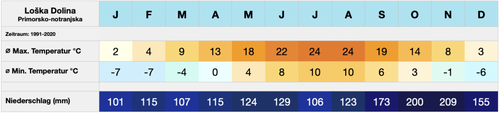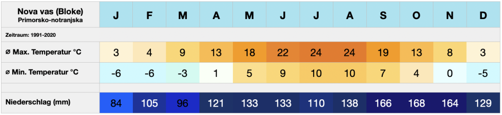 Klimatabelle von Nova vas – Bloke (1991-2020)3