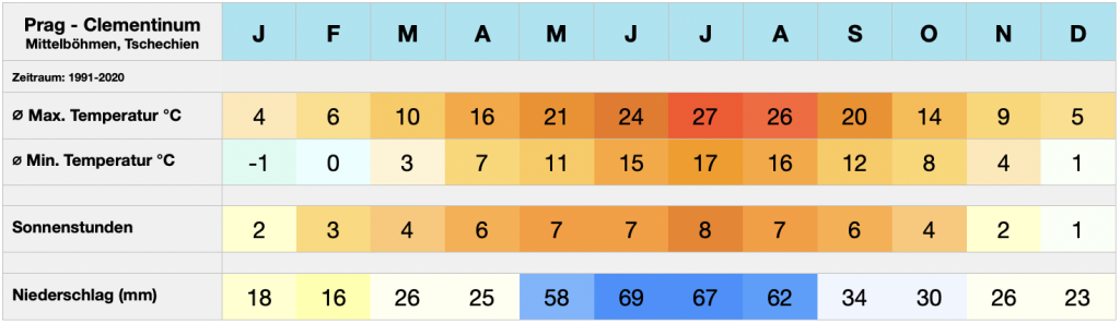 Klimatabelle von Prag (1991-2020)1